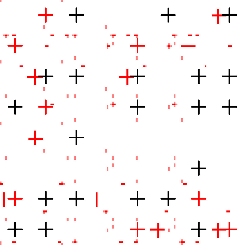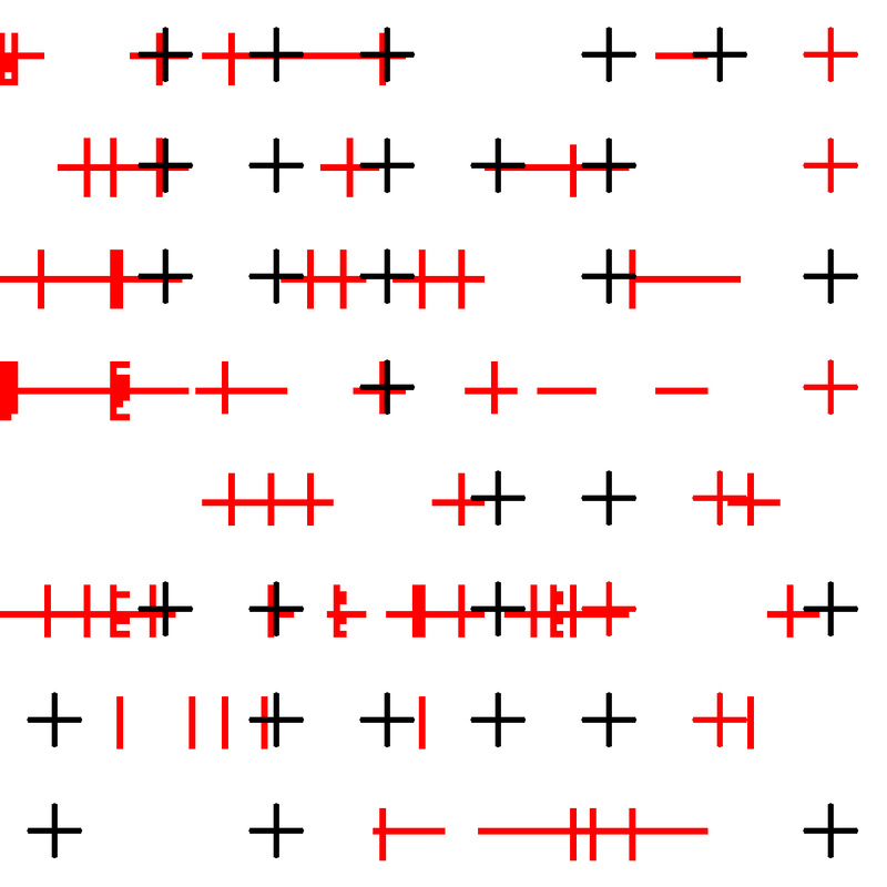 Jeg oppdaget Vera Molnár for noen år siden i det inspirerende magasinet Holo 2. Allerede på 60-tallet brukte hun datamaskiner og programmeringsspråkene BASIC og Fortran til å lage regelbundne mønstre med innslag av vilkårlige variasjoner. En pionér innen algoritmisk kunst som har vært en inspirasjonskilde for de mer pikselbaserte tingene jeg pusler med.
